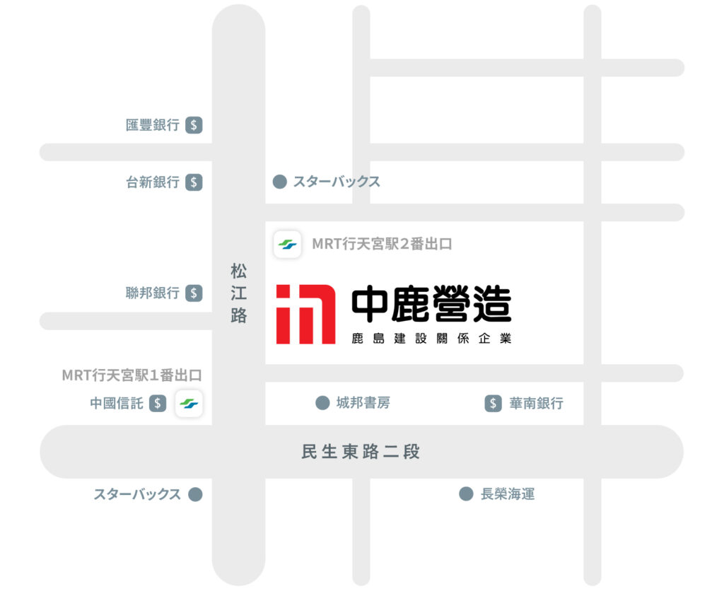 中鹿営造は、鹿島の伝統と社風を受け継ぎ鹿島の技術力と総合力を台湾で活用し、施工においては現場第一主義でプロセスでの品質の造り込みにこだわりと情熱を持って取り組み、社会やお客様にとって価値ある建設・サービスを提供します。